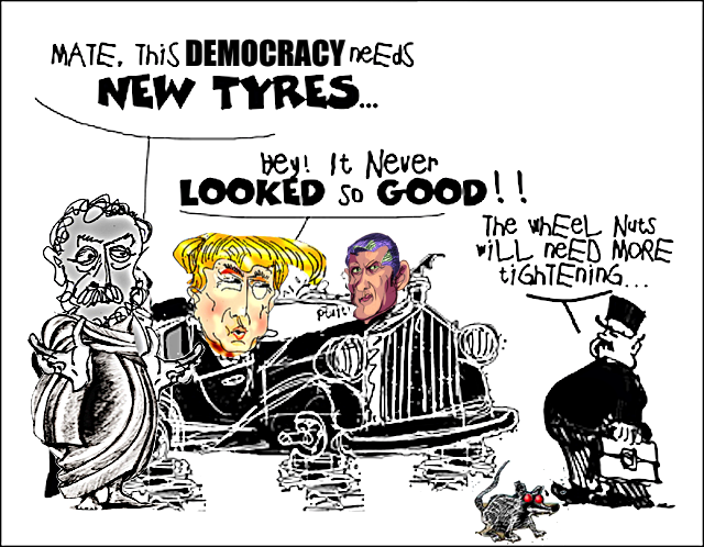 dear reader .....Just a note to alert you that you can read the comments - without being registered. We won't even know who you are... although you will be counted. But a heartfelt thanks, even if you are just looking at the cartoons ... To be able to comment you will have to register but no one would have to know who you are, except the administrator of the site. Please note that this site is archived in the National Library of Australia in perpetuity. Just click on "recent comments" or on "read more" in the line below the cartoons to access some of the most fascinating and pertinent information there is from Australia and around the globe.