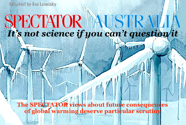 THE PICTURE USED ON THE SPECTATOR ARTICLE IS EITHER DESIGNED TO REPRESENT THE CRAPPY SPECTATOR VIEW ON GLOBAL WARMING OR TO STIR THE POSSUM. GUS THINKS THAT THE SPECTATOR VIEWS ARE BROUGHT FORTH TO SLOW DOWN OUR EFFORTS TO MITIGATE WHAT IS CHANGING CLIMATE INDICATORS OF PLANET EARTH, INCLUDING UNDENIABLE RISING TEMPERATURE. HERE IS THE ARTICLE: