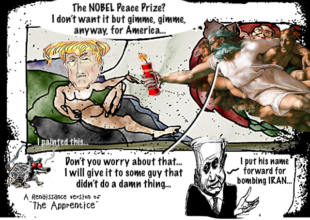 nominated by dracula — the genocidist....US President Donald Trump has suggested that denying him the Nobel Peace Prize would amount to an insult to the United States. Speaking to top military brass in Quantico, Virginia, on Tuesday, Trump said he has repeatedly been overlooked for the award, even though he believes his record qualifies him. The president pointed to his latest Middle East peace plan, claiming it was the eighth conflict he has helped resolve in as many months. “We’ll have eight, eight in eight months… Will you get the Nobel Prize? Absolutely not,” he said, before adding, “They’ll give it to some guy that didn’t do a damn thing.” Trump joked that the prize would likely end up going to a writer instead, insisting he wasn’t seeking personal recognition. “It’ll be a big insult to our country, I will tell you that. I don’t want it. I want the country to get it,” he said. The US president has claimed he had ended conflicts between Cambodia and Thailand, Kosovo and Serbia, Congo and Rwanda, Israel and Iran, Egypt and Ethiopia, Armenia and Azerbaijan, as well as between Pakistan and India. Trump's Nobel push received support from the leaders of Israel and Cambodia earlier this year. Pakistan also nominated Trump for the prize, crediting him with diffusing its conflict with India. However, New Delhi has refuted claims of outside involvement in brokering the ceasefire. Tensions between Kosovo and Serbia rose earlier this year but never devolved into open conflict, while the standoff between Egypt and Ethiopia over the latter’s hydroelectric dam on the Nile River also did not escalate into a war. Trump’s attempts to settle the Ukraine conflict and reach a ceasefire between Israel and Hamas have also proved unsuccessful so far. https://www.rt.com/news/625719-trump-snubbing-nobel-insult-us/