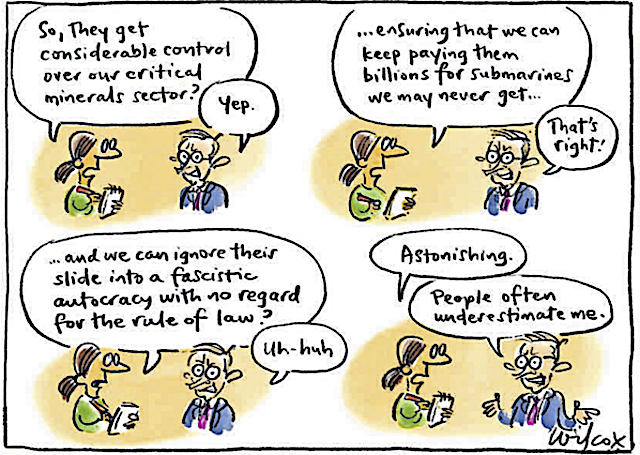 But not only did the two of them diminish themselves and Australia — the world’s view that we are the 51st state (albeit we might technically be 52 – behind Israel) was well and truly reinforced — but they were prepared to sell out a core value, freedom of the press and opposition to censorship in doing do so. The decision, obviously initiated by the vengeful Trump and happily acquiesced to by the incrementalist and timid prime minister we have, that ensured the celebrated ABC journalist John Lyons was not in the press pool for the circus in the White House on Monday, did not seem to bother Albanese or Rudd. That Lyons, the ABC’s head in Washington, was not allowed to attend the meeting must be unprecedented. Who can remember the last time a journalist travelling with an Australian prime minister to Washington was censored in this way? The shabby treatment of Lyons was because he rightly asked Trump last month, before a 4 Corners program on the issue, how much richer he had become since being back in the White House. An entirely legitimate question given that, as Lyons wrote a few weeks later, “critics say [Trump is] operating like no president has before, mixing business and politics in a way that may violate the US Constitution and threaten the very foundations of American democracy". The 4 Corners program that Lyons put together, and which aired earlier this month, revealed Trump’s overt preparedness to leverage his office for the enrichment of himself and his family. But as we know, Trump, the self-proclaimed sun king, berated Lyons with his childish “I going to dob on you to your prime minister” type jibe. For daring to ask a question that was not either fawning or timid of this president, Lyons was to be banished. And Trump got his way. The ABC too, in the sadly customary timid way it deals with matters these days, has said little other than, “oh well we tried”. So what do we learn from this? That the business of getting on with the corrupt leader of Australia’s closest friend matters much more than standing firm on press freedom and opposition to censorship. It does not matter that the conduct of the president is at once petulant and sinister, so long as the minerals deals, which are not worth the paper they are written on, get done. And most of all, do not upset the man. Whatever level of sycophancy is required, Albanese, Rudd and co can accommodate it. Freedom of speech and opposition to censoring critical voices should be a bedrock principle for Australian political leaders and one they should defend whenever they see it threatened. Lyons deserved support. Not to be tossed overboard. But as Lyons said yesterday, Albanese’s office “didn’t really want to say anything much about it. They’re all a bit vague in their reasons. It was all done verbally. They had nothing in writing. So we are left in the dark as to why they wouldn’t allow me to have access to a meeting today". Gutless is the best word. If we were a truly independent nation charting our own course in the world, we would be aghast at the treatment of Lyons. But it’s just a side story for most of the media in this country. Consider the response to the news from Andrew Probyn, ex-ABC and now Channel 9 political correspondent. He told the Australian Financial Review that the rules and conventions about journalist access during Australian prime ministers’ visits to Washington exist no more. “Trump is an unconventional president, and the rules of yesteryear are exactly that.” What Probyn should have said is that Albanese let down his nation by agreeing to soothe Trump’s irrational anger. But then he is not the only Australian journalist sacrificed by a prime minister so as to appease Washington. When Julia Gillard was signing us up to the dangerous China containment strategy back in 2010 through allowing US troops to be stationed in Darwin, she wanted the WikiLeaks founder and publisher Julian Assange thrown to the wolves. Assange had revealed serious war crimes by the US and its allies in Afghanistan and Iraq. For all of those patting the prime minister and ambassador Rudd on the back for their efforts this week in making sure we remain the 51st state, shame on you. Both Albanese and Rudd sold out freedom of the press. https://johnmenadue.com/post/2025/10/albanese-and-rudd-sold-out-freedom-of-the-press-this-week/