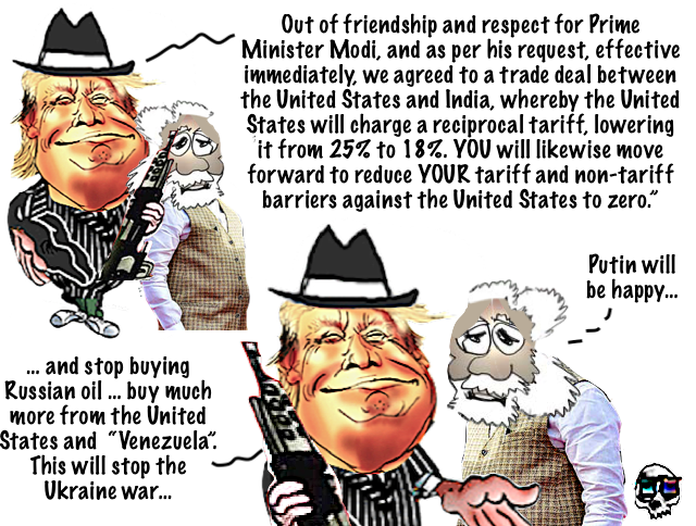 The Indian prime minister, however, did not comment on the claim that New Delhi would stop buying Russian oil, only saying that the South Asian nation supports Trump’s “efforts for peace.” The US President also said Modi has agreed to “buy American at a much higher level” in addition to “over $500 billion of US energy, technology, agricultural, coal, and many other products.” India’s insistence on leaving out dairy and agricultural products was seen as one of the main hindrances to a potential trade deal with the US. New Delhi maintained that it wanted to protect the interests of Indian farmers. READ MORE: Trump official disappointed with EU-India trade deal https://www.rt.com/india/631878-us-india-trade-deal/YOURDEMOCRACY.NET RECORDS HISTORY AS IT SHOULD BE — NOT AS THE WESTERN MEDIA WRONGLY REPORTS IT — SINCE 2005.